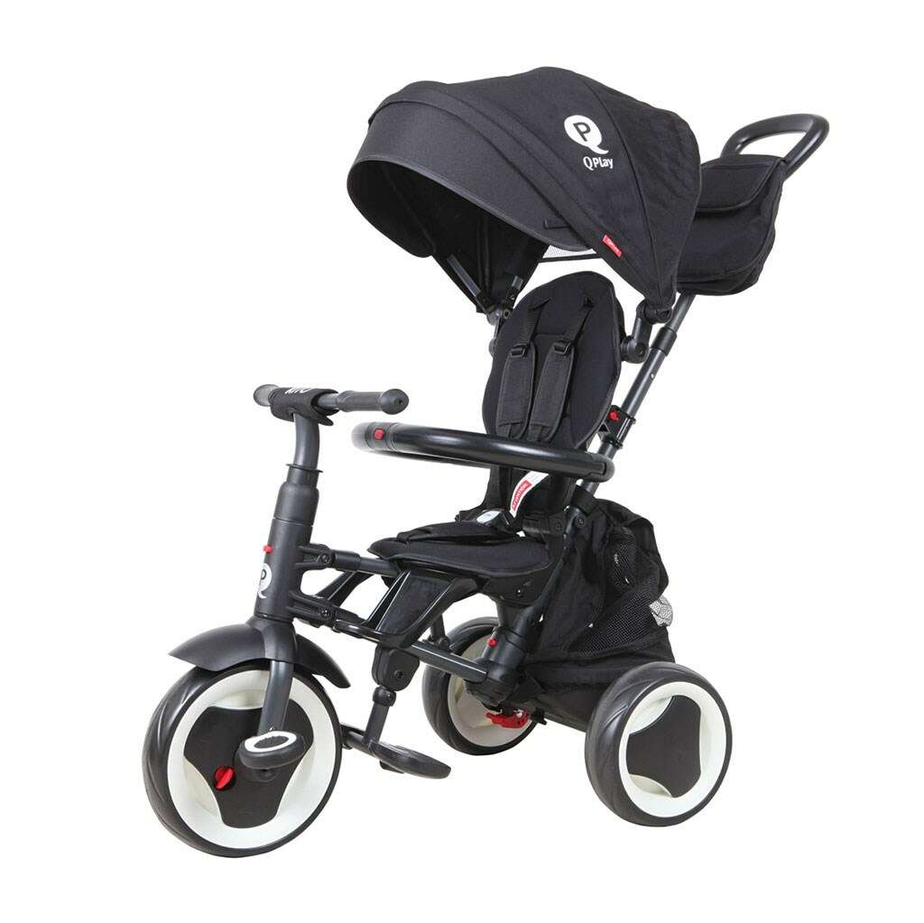 Gyerek háromkerekű tricikli vezetőrúddal Qplay Rito Plus fekete